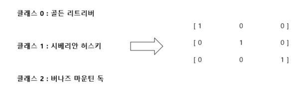 정답 레이블 [0 0 1]인 마운틴 버나즈 독이라고 가정하고, 예측 값이 [ 0.3 0.2 0.5]이라고 해보겠습니다.