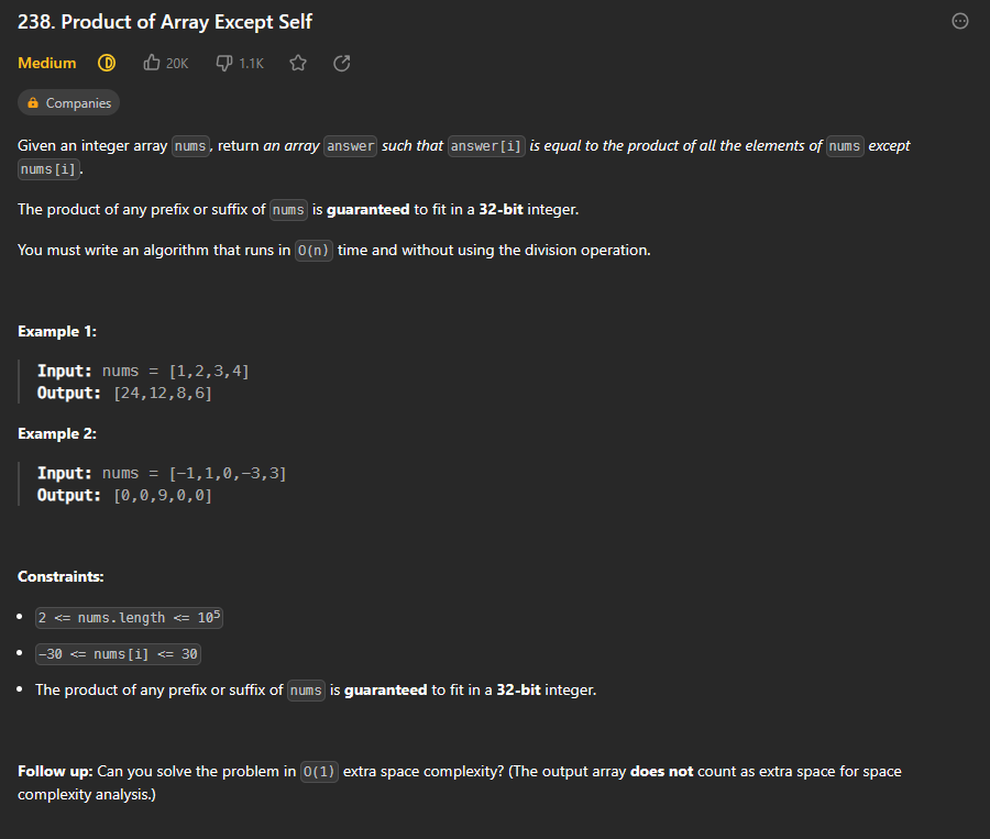[LeetCode] Product of Array Except Self 본문