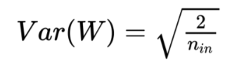 정규분포를 따르도록 초기화할 경우, 평균이 0이고 표준편차가 아래의 식을 만족하도록 아래의 식을 따릅니다.