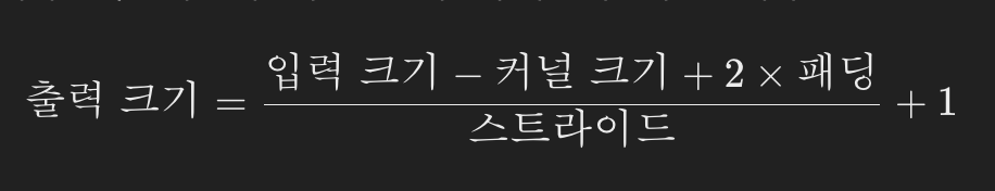 self.fc = nn.Linear()의 크기에 대해 알아보도록 하겠습니다. n번째 합성곱 레이어의 출력 크기를 계산하는 수식은 아래와 같습니다.