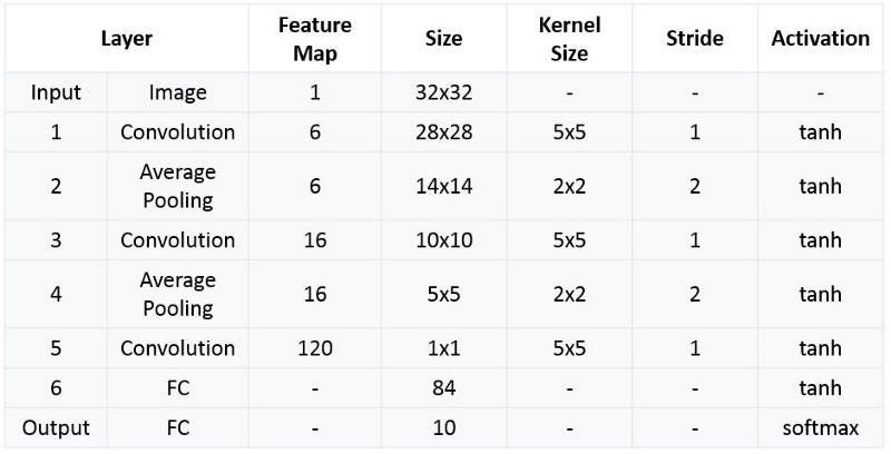 또한, LeNet-5의 신경망 Sumamry 이므로 구현하실 때 참고하시길 바랍니다.