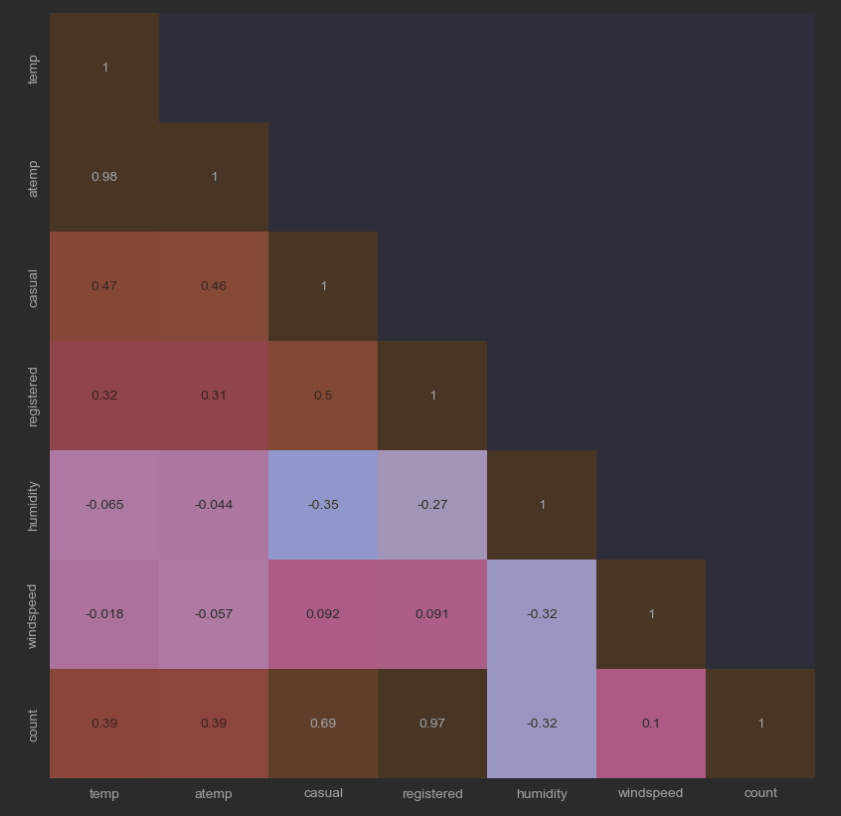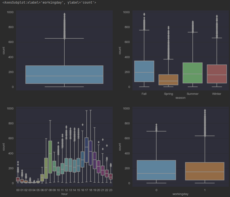 - June, July, August (여름)에 자전거를 사용하는 수요가 가장 많은걸 파악 가능