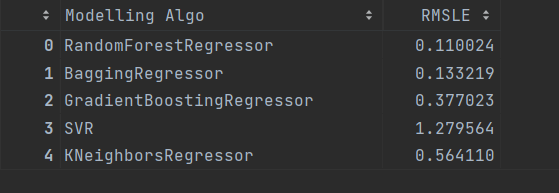 result={'Modelling Algo':model_name,'RMSLE':rmsle}
