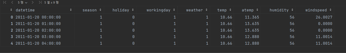 # Train dataset의 크기 => (10886, 15)