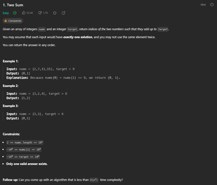 Brute Force 방식과는 달리 HashMap를 사용하게 된다면, 한번의 Iteration으로 결과 값 도출이 가능합니다.