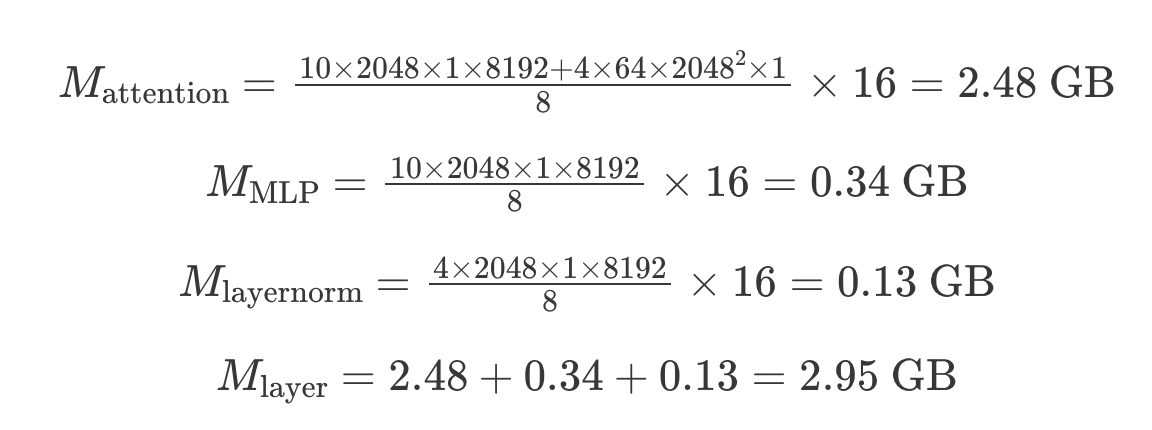 한 트랜스포머 레이어의 활성화 값을 저장하는 데 필요한 다음과 같이 계산할 수 있다.