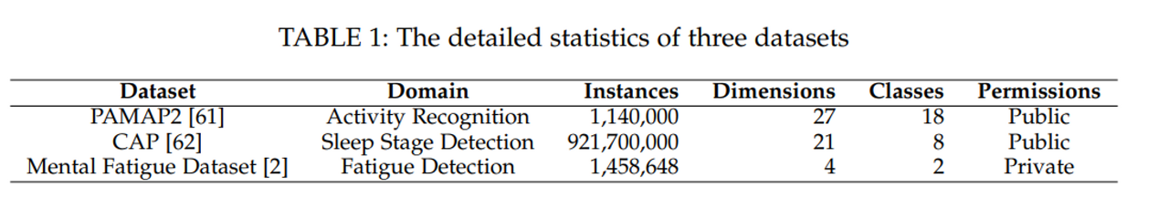 | - | PAMAP2 | CAP Sleep Database | Mental Fatigue Dataset |