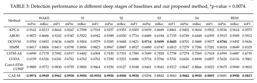 따라서, CAP Sleep Database의 Sleep Stage별로 이상 탐지 실험을 반복적으로 진행하였으나, S3의 Abnormal 경우를 제외하고 좋은 성능을 보임.