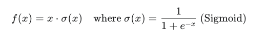 이렇게 GELU 함수가 가진 계산 비용의 문제점을 해결하면서도 극한의 효율을 이끌어내는 함수가 바로 Swish 함수이다. Swish 함수는 SiLU (Sigmoid-weighted Linear Unit) 라고도 불리며, LLAMA를 포함한 수많은 LLM에 채택이 되었다. GELU 함수는 확률 이론에서 시작한 것과 달리, Swish는 Google Deepmind 연구진들이 수많은 후보 함수를 만들어 테스트한 결과, 가장 효과적이면서도 단순한 구조가 바로 Swish 함수이다.